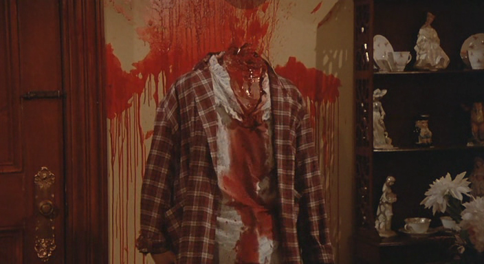 Forget the plot twists, holes, and downright ridiculous moments, because we can all agree that High Tension (aka Haute Tension or Switchblade Romance), directed by the ever-so-talented Alexandre Aja, is full of more gore than the aftermath of a lawnmower attack on a throng of zombies (see Dead Alive). The special effects in this film are truly remarkable, as evidenced by the sheer amount of hemoglobin left in the wake of its nonstop violence. For my money, the goriest scene is the slaughter of Alex’s family by the unnamed killer. He uses a razor to dispatch of the mother and brother; after the killer slits her father’s throat he sticks his head through the bars of a staircase and pushes an enormous armoire alongside the railing, decapitating him. There are few murders by furniture in the annals of horror film.