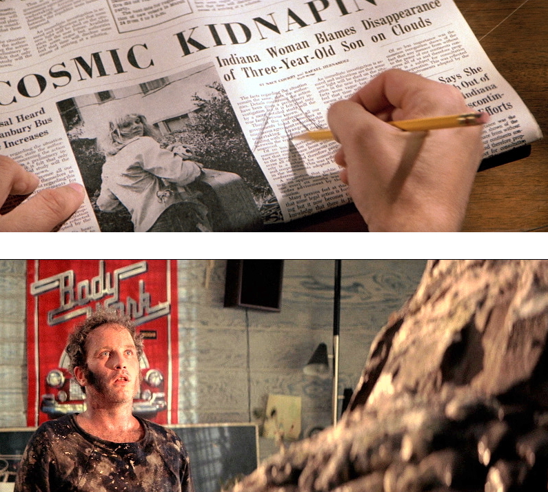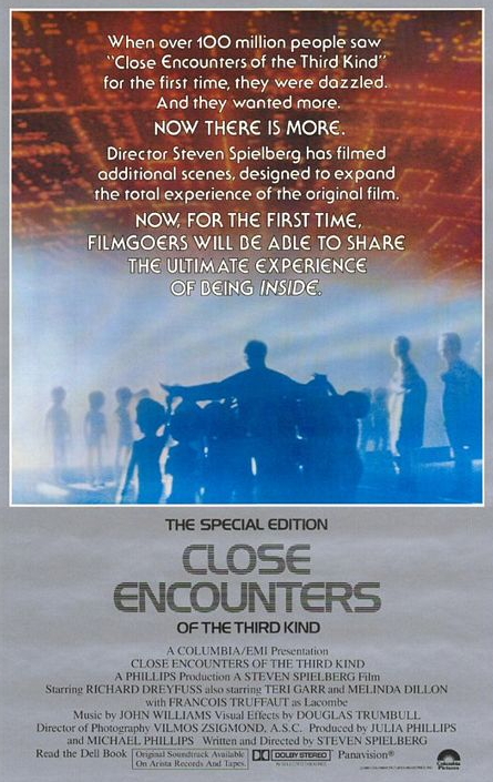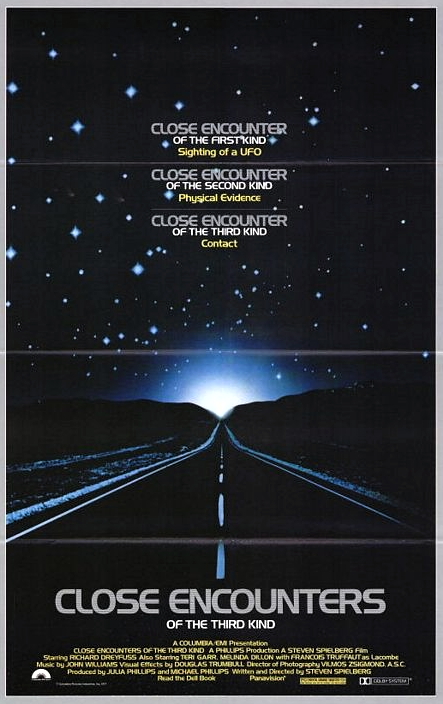 “Cableman Roy Neary is one of several people who experience a close encounter of the first kind, witnessing UFOs flying through the night sky. He is subsequently haunted by a mountain-like image in his head and becomes obsessed with discovering what it represents, putting severe strain on his marriage. Meanwhile, government agents around the world have a close encounter of the second kind, discovering physical evidence of otherworldly visitors in the form of military vehicles that went missing decades ago suddenly appearing in the middle of nowhere. Roy and the agents both follow the clues they have been given to reach a site where they will have a close encounter of the third kind: contact.” (courtesy IMDB)
