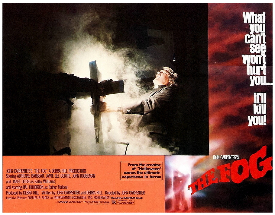 The first half is terrifically atmospheric, almost poetic at times, as John deftly juxtaposes several story-lines (which was one of the early Carpenter’s real skills) and presents several characters we care for, including hitchhiker Jamie Lee Curtis, truck driver Tom Atkins, and smooth-talking disc-jockey Adrienne Barbeau, who warns local listeners of the fog’s direction from her lighthouse radio station. The suspense builds to a high level, but the film quickly deteriorates into conventional horror fare.