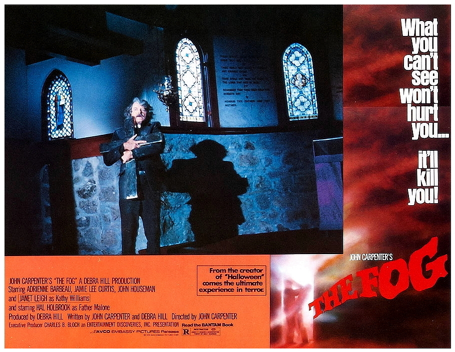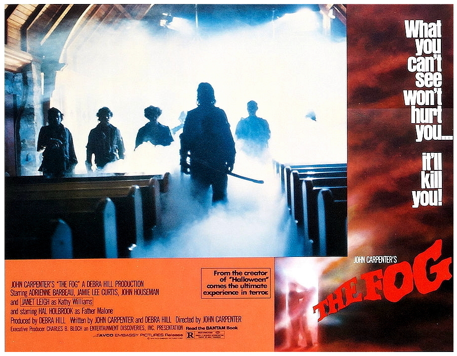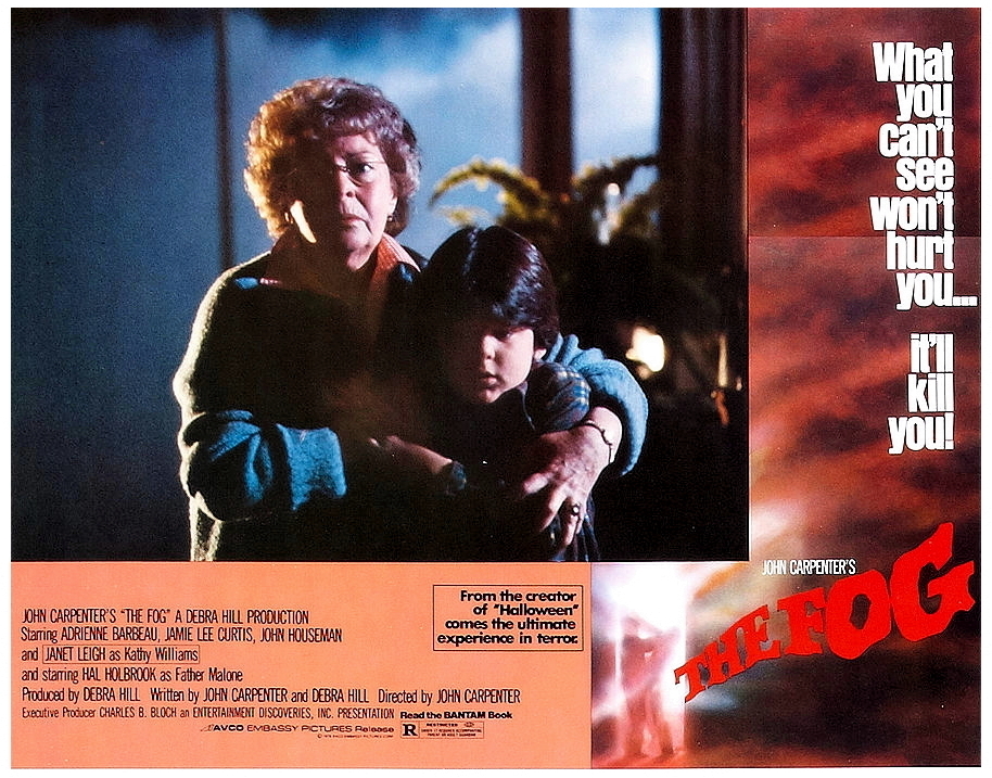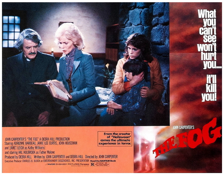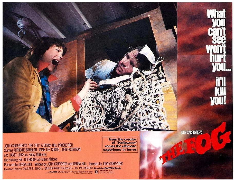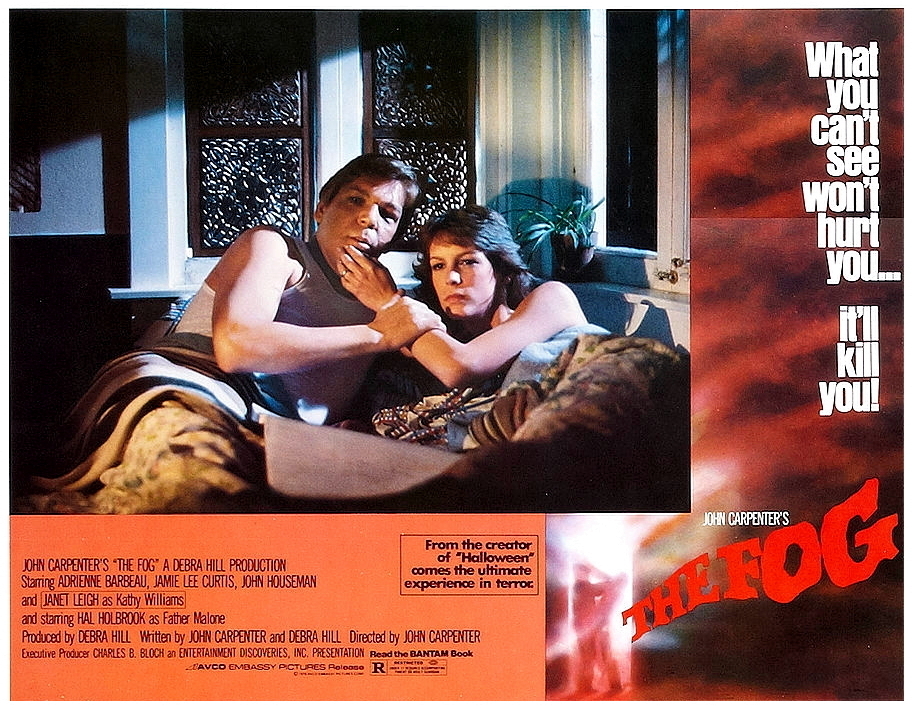 The first half is terrifically atmospheric, almost poetic at times, as John deftly juxtaposes several story-lines (which was one of the early Carpenter’s real skills) and presents several characters we care for, including hitchhiker Jamie Lee Curtis, truck driver Tom Atkins, and smooth-talking disc-jockey Adrienne Barbeau, who warns local listeners of the fog’s direction from her lighthouse radio station. The suspense builds to a high level, but the film quickly deteriorates into conventional horror fare.