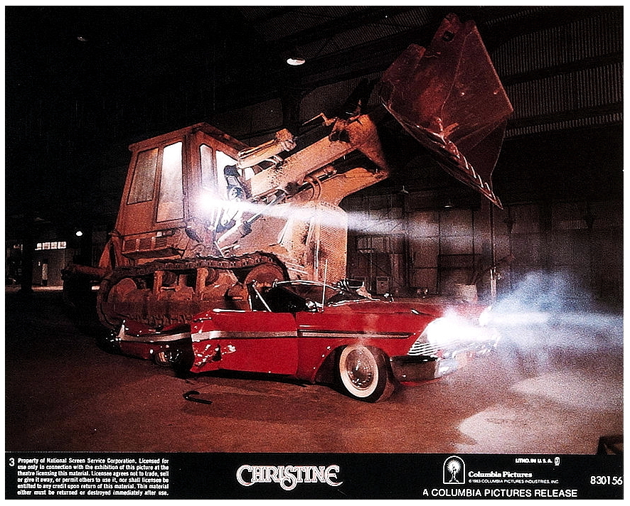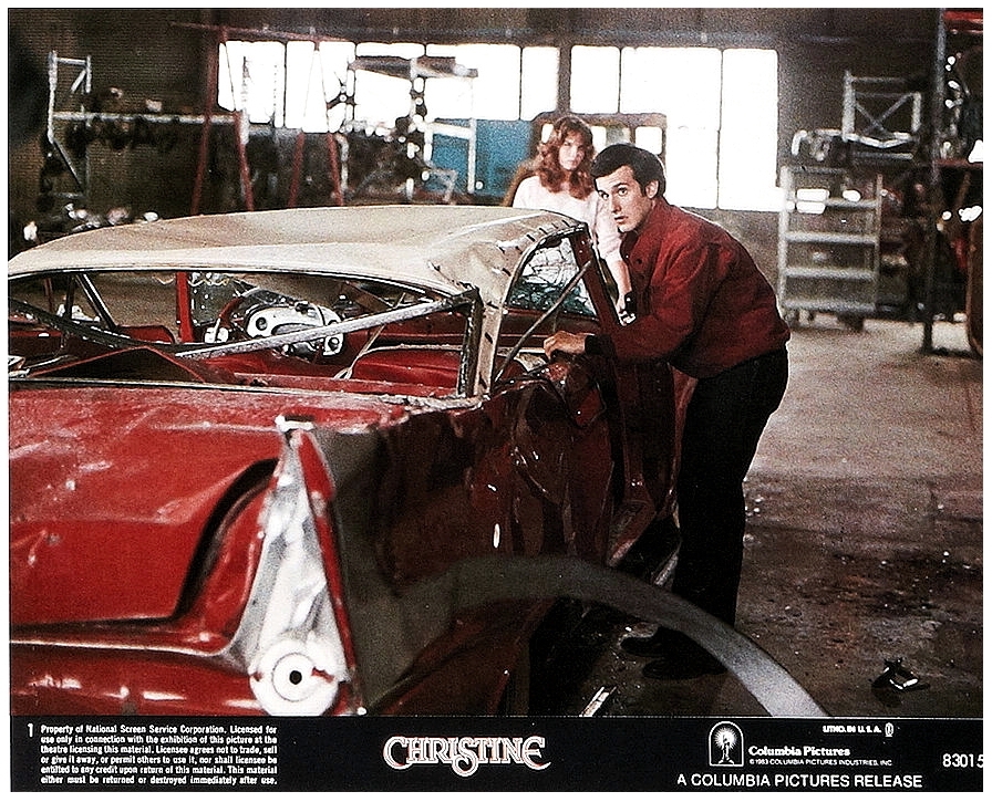 “Arnie Cunningham is a typical high school nerd who is picked on, overruled by his parents, and has very few friends. Until he meets Christine, a run-down 1958 Plymouth Fury and buys her. Arnie learns that Christine has a thing for him and devotes his time to restoring her to mint condition. But overtime, Arnie begins to change and becomes disconnected with reality and his friends. Arnie’s girlfriend Leigh and best friend Dennis find out that Christine’s previous owner cared about nothing else when he bought her and find out that Arnie is becoming just like him. The only way they can bring Arnie back to reality is to destroy Christine, but Arnie and Christine are ready to destroy them first and any one else who gets in their way.” (courtesy IMDB)