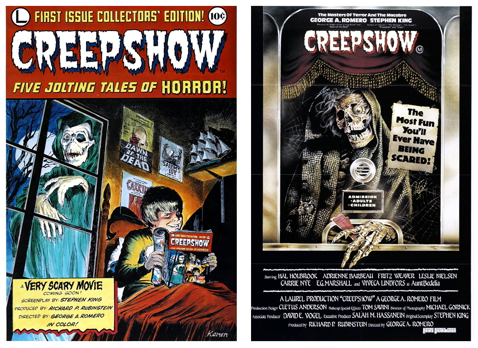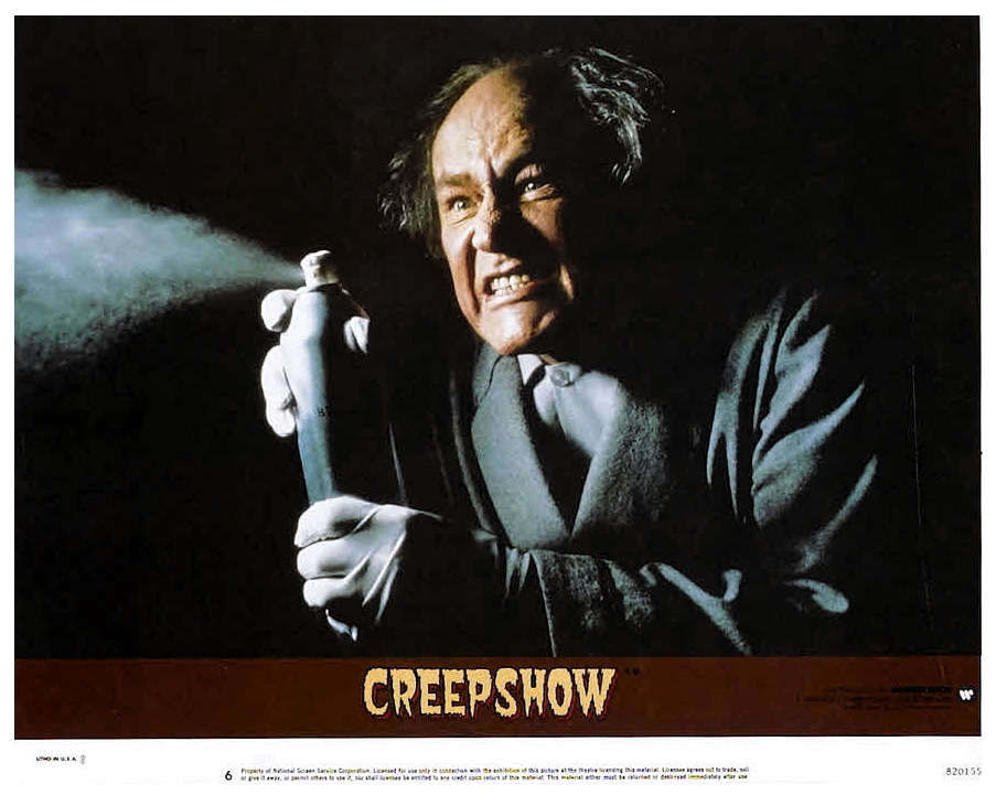 Sometime between Dawn Of The Dead and Day Of The Dead, George began his longtime partnership with prolific author Stephen King. Mister King is a scribe of course, not an actor, but is blessed with the singular talent of portraying an obnoxious redneck convincingly (probably because he’s had the misfortune to meet so many during his career), and George put Mister King to work in his next two films: Knightriders (1981), a festival favourite about a group of modern-day jousters who reenact tournaments on motorcycles starring Ed Harris and Tom Savini, and the commercially successful Creepshow (1982), written by Mister King himself, an anthology of tongue-in-cheek tales modeled after fifties pre-code horror comics.