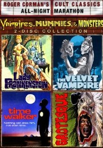 I can’t praise Shout! Factory enough for their ongoing series of Roger Corman’s Cult Classics, dedicated to doing justice to the substantial output of the legendary independent producer/filmmaker. The man deserves every bit of praise he receives. Although most of his “big” titles have been exhausted by this point – Shout! has been putting them out for over a year now – the company continues to put a lot of care into each and every title. The latest entry, a two-disc collection dubbed Vampires, Mummies & Monsters, features 1971’s Lady Frankenstein, 1971’s The Velvet Vampire, 1982’s Time Walker and 1988’s Grotesque.