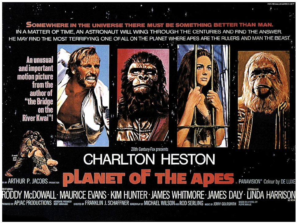 A boom year for the fantasy genre dawned with 1968 Pierre Boulle‘s novel Monkey Planet, in the form of a screenplay by Rod Serling had been turned by Warner Brothers as being too expensive. The option had been picked up by 20th Century Fox, who realised the potential in the story. Planet Of The Apes (1968), directed by Franklin Schaffner and starring Charlton Heston, became one of the most successful films in the studio’s history and was popular enough to warrant four sequels – Beneath The Planet Of The Apes (1970), Escape From The Planet Of The Apes (1971), Conquest Of The Planet Of The Apes (1972), and Battle For The Planet Of The Apes (1973) – as well as two television series and at least two recent reboots – Planet Of The Apes (2001) and Rise Of The Planet Of The Apes (2011). While the first three films were of a high standard, the other entries are little more than B-grade spin-offs, devoid of the wit or charm of their predecessors.