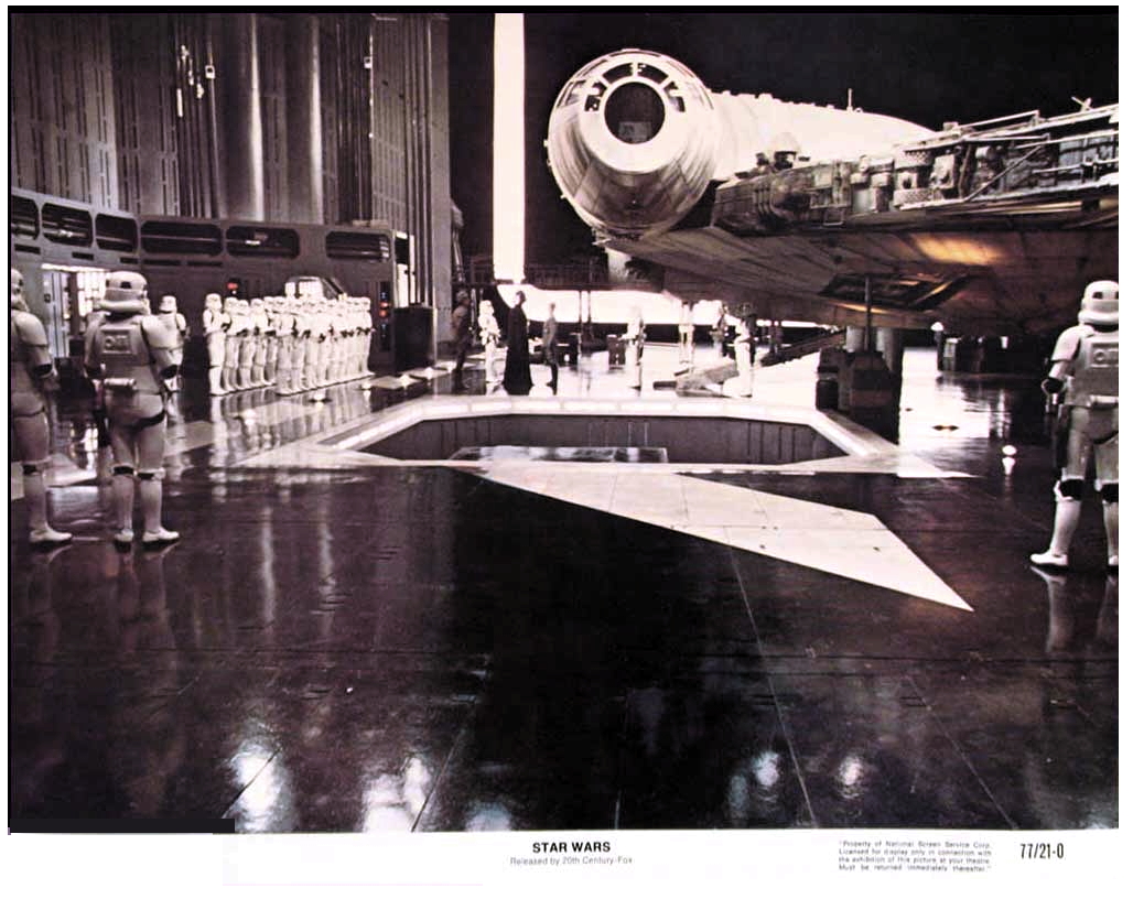 George Lucas had been hawking his script The Star Wars around various Hollywood studios since 1975 and, despite his success with his American Graffiti (1973) for Universal, he found no takers – the box-office failure of Rollerball and Logan’s Run had seen to that. In 1976 he approached Alan Ladd Junior, then production chief at 20th Century Fox. While not overly impressed with the script, a rehash of Flash Gordon-style space adventures, he was impressed by the director’s enthusiasm for his project and belief in its potential success. Ladd green-lighted the film, now known as Star Wars IV: A New Hope (1977), went into production at EMI-Elstree studios in England. About the same time Steven Spielberg, considered Hollywood’s Golden Boy since Jaws, was putting his science fiction film, Close Encounters Of The Third Kind (1977) into production in a disused dirigible hangar in Mobile, Alabama.
