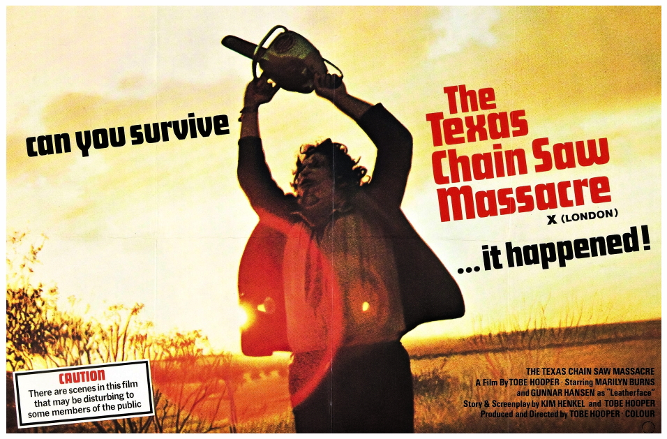 Then came The Texas Chainsaw Massacre (1974), a low budget horror film still lauded today as one of the most terrifying films ever made. Although there is actually little violence on-screen, Tobe Hooper‘s direction is so persuasive that many people who see the film are certain that they have witnessed actual dismemberment by the title’s implement. It is a masterpiece of editing and the use of sound in its creation of a nightmare of extended horror – the film is, in effect, one long climax. The Texas Chainsaw Massacre was also to have a profound effect on the horror sub-genre that became to be known as the ‘bodycount’ film, a cycle which still continues to this day.