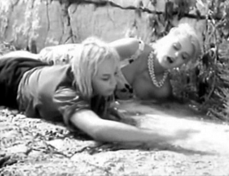 Any interest generated by this film is not because of a riveting story with earnest characters. Most of the girls seem like carbon copies of one another and the plot is as about as exciting as an afternoon doing your taxes. Most of the women are portrayed as weak, incompetent, mostly useless and utterly unprepared to survive, while the film makes it clear that all the male characters are the leaders, saviors and clearheaded thinkers. The only problem is, these guys are still morons. Gary walks off by himself and gets bitten. Moron. Bob, knowing full well that there is something dangerous on the island responsible for at least two deaths, be it man or beast, still walks off alone so he can have a private tryst with Gladys. Moron. Joe is the only guy with some semblance of a brain, and naturally the film plays him up as being somewhat inexperienced with the ladies.