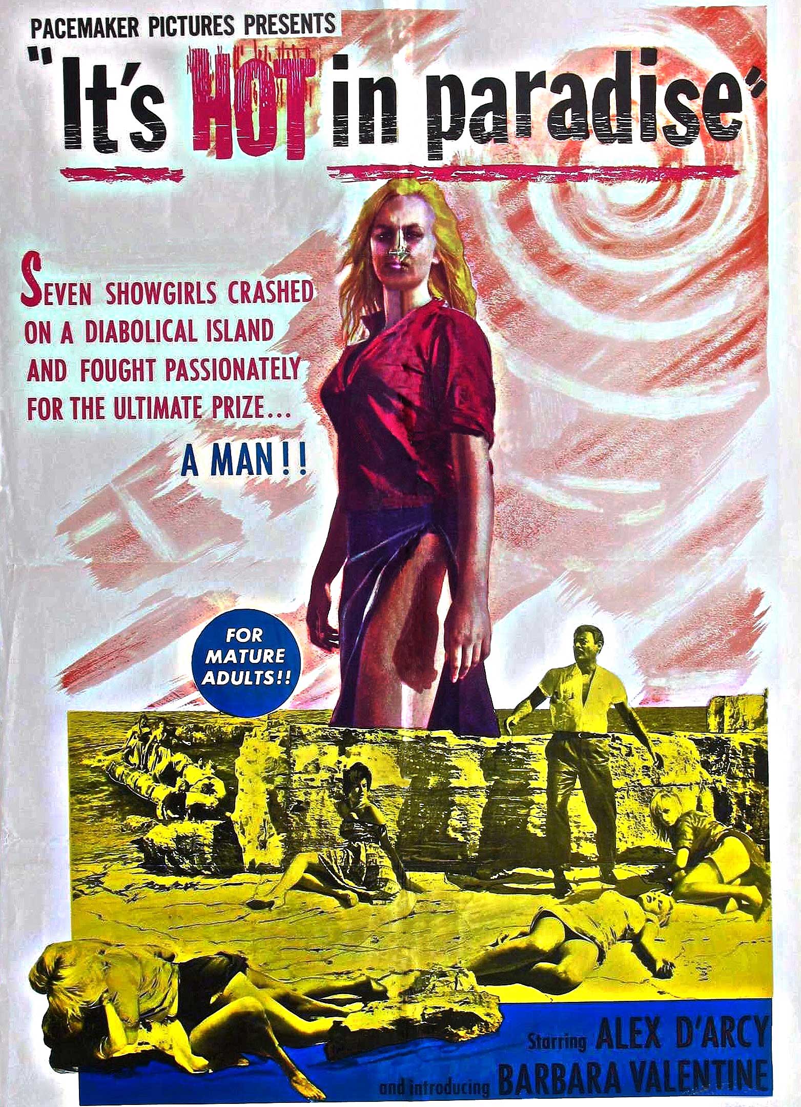 “En route to a show in Singapore, a troupe of beautiful dancers are stranded on a deserted island by a plane crash. Their routine of skinny-dipping and devising new skimpy outfits is interrupted when a radioactive spider bites their manager and turns him into a wild-eyed, furry-faced monster with three fangs and a passion for strangling.” (courtesy IMDB)