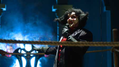 So about nine years ago “Killjoy 2” came out and I’ll gladly say the only thing that “Killjoy 3” has in common with the previous film is the actor Trent Haaga as Killjoy in “Killjoy 2” and he does a great job in the role. And who is Killjoy? He is pretty much Carrot Top with blue hair, little extra makeup and no Vegas show, well that and Killjoy kills people which I only have theories as far as Mr. Top goes but nothing I can prove. Another the great performance in the film is that of Victoria De Mare who will make you feel really messed up for having dirty thoughts about a naked clown. De Mare’s character Batty Boop has an entire costume of just body paint which aside from being genius makes the film worth watching if not for the rest of what the film has to offer.