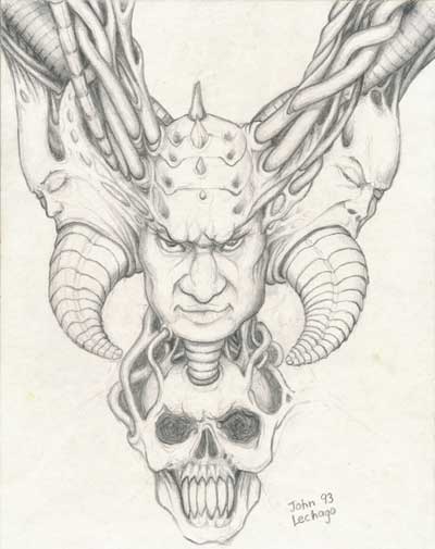 Frankly, I do not really know what my inspiration is. I guess it isn’t anything specific. I have painted a large variety of subjects, from still life’s, landscapes, portraits to fantasy and surreal art. I think that I am inspired by the moment. Yeah, sounds pretty boring. Actually I really do love to think about biology when I am drawing or painting monster stuff. My father was a Pathologist, so I think that I was inspired by his descriptions of medicine and biology. Yes, he performed autopsies, and I grew up hearing about them, so I never thought of them as morbid. Are my paintings Geiger like? Yes I suppose so. Actually I have been drawing like that before I discovered Geiger. When I finally saw Geiger’s art I loved it. Very powerful stuff. But he seems to use a lot of machine imagery in his work. Indeed he calls it Biomechanics. My drawings are purely organic, though they share a similar feel. I would have to credit conversations with my father for my style. I also love the architecture of Antoni Gaudí.
