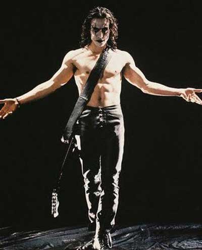 Brandon Lee who plays guitar player Eric Draven couldn’t have known that this award winning role would be his last as tragedy stuck the set. The story goes that during one of highlight gunfight exchanges, a pistol was mistakably loaded with real bullets instead of blanks. Thus ending the life of a top up-and-comer before his prime.