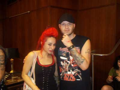 Nekroman’s left hand man, Franc,wailing on the guitar, and the new addition to the terror trio, the breathtaking and supertalented Lux Drummerette, also from Sacred Storm on drums. The Nekro crew blasted through a fun, pitch perfect almost hour and a half set that was absolutely arena worthy. Oh, and just a little fy-die, they are the nicest, most gracious band you will ever meet in your whole reanimated existence!Be sure to check them out when they hit a town near you. And if you don’t know who they are, dig yourself out of your grave of oblivion you’ve been slumbering in since 1989 and go listen to one of the greatest psychobilly bands ever! Check NEKROMANTIX.COM for tour stop information, also check out LUXDRUMMER.COM to receive info on one the greatest drummers to play in a pair of five inch heels. Rawrrawr!