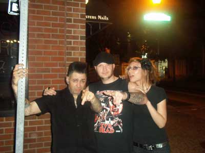 Legendary psychobilly trio, Nekromantix, may possibly be touring a small, that’s right,small venue near you.I had the pleasure of not only seing, but hanging with the band outside their stop at the First Unitarian Church in my hometown of Kill-adelphia! The venue itself only had capacity for about one hundred sweaty greasers so the experience was extremely personable, and most importantly, a once in a lifetime opportunity.Led by groovy vocalist,Kim Nekroman and his infamous coffin bass, which made him resemble a character of Django proportions, dragging his coffin around a western landscape.