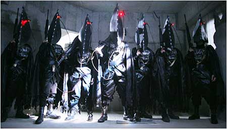 Though if you know anything from watching these zombie Tokyo gore creations, it’s that the fun never ends with things, creatures and manifestation popping up around every corner. The film showcases a constant battle between the infected and those who have been sent to kill off the Queen thus severing the lifeline from her minions. Even with the constant gore factor here “Hell Driver” manages to invoke lots of dark humor with flying zombie heads that attack what they bite into and a healthy collection of zombie-fused warrior creatures. One creature sports additional arms and legs flying at her victims with sword or machine gun in hand while another seems to be fused together with the discarded weapons of swordplay. Baby zombies, flying umbilical cords, tentacles lashing out, a wall with living zombie arms…..the imaginative collective here never seems to let up making this a must see for the collection of Tokyo gore extreme entrees.
