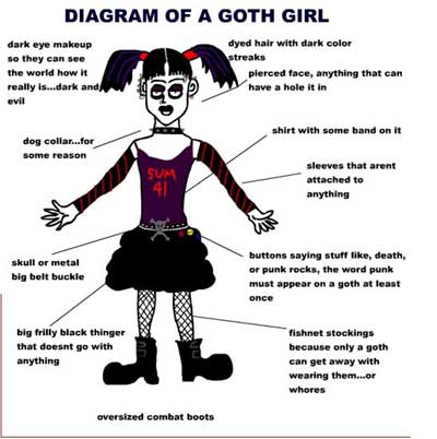 What the f*ck can I say about the Goth subculture that could not already be summed up within my last bowel movement? They are both kind of dark, smell weird, stay in a confined area away from sunlight, and float in a bowl. Wait a minute; maybe they are different so forget I compared the two.
