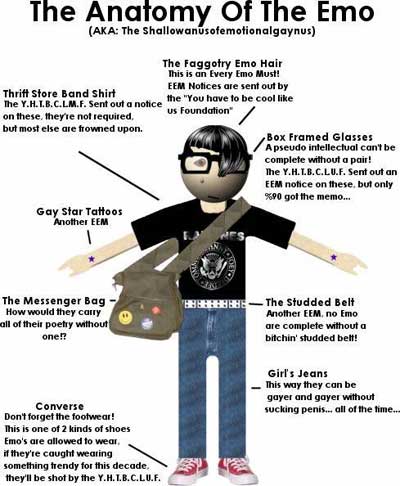 Emo kids don’t wear the costume because they live at home still because they cry and whine too much to even have a retail job. Also, Goths just look dead and Emo wish they were dead. I personally wish they were both dead but that’s because I hate everyone. You knew that already though.
