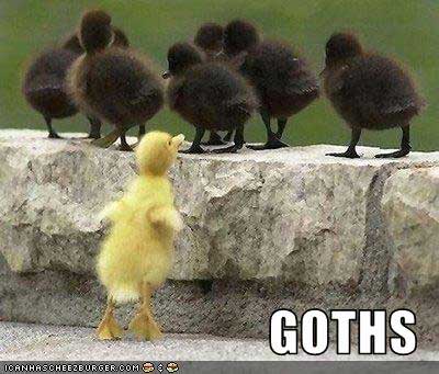 Goth comes with a defined set of sociological standards whether they like to fit under a label or set of standards or not. Welcome to the existential and communicative comprehension. Even be to non-existent is existent because you comprehended and said it so get over the linguistic semantics. What was I saying? Never mind, those f*cking unicorns are back in my peripheral distracting my train of thought again. I should be able to focus because they didn’t bring the hookers this time.