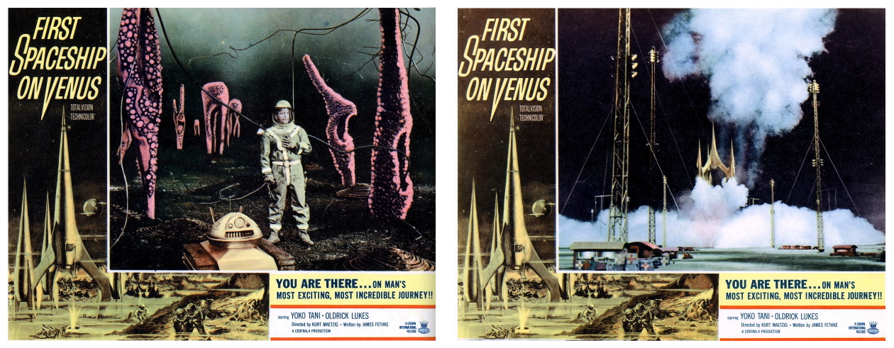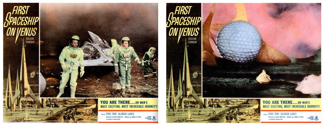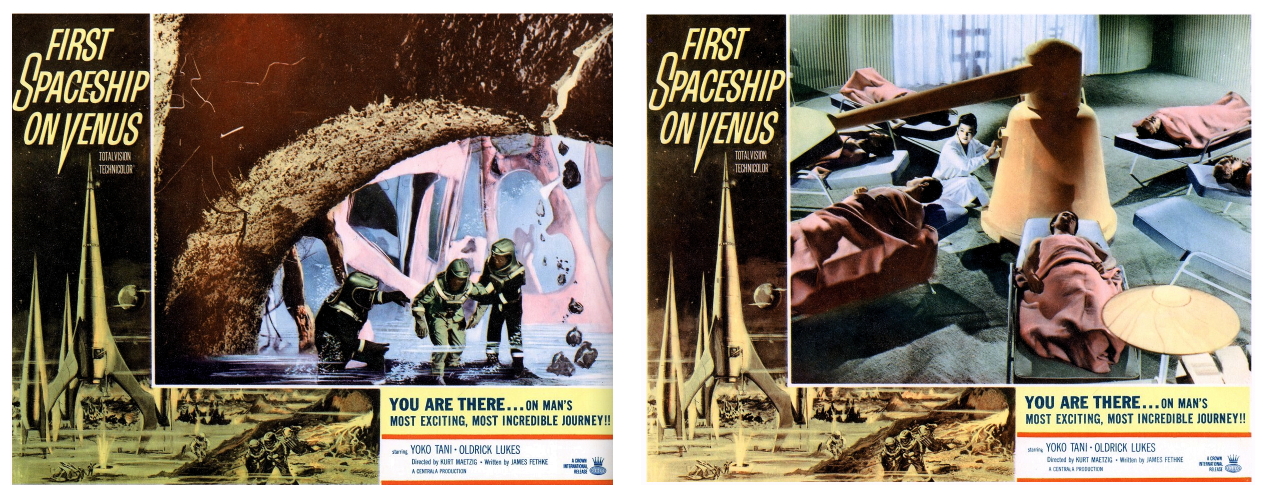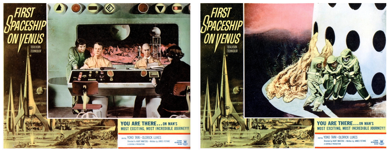 There you have it, the East German extravaganza known as First Spaceship On Venus. Only two actors, one writer and one director made it into the American credits yet, astoundingly, there are three sound engineers listed! The music is an obnoxious collection of stock cues that offer up a comical tune for the robot and predictable oriental-sounding music for the introduction of Sumiko. In the rocket control room we hear music from Destination Moon (1950), the destruction of the Venusian city is set to the music from This Island Earth (1955), and throughout the film we hear snippets from The Creature From The Black Lagoon (1954), Forbidden Planet (1956) and others, so it’s like listening to a sci-fi mix tape – with dialogue.