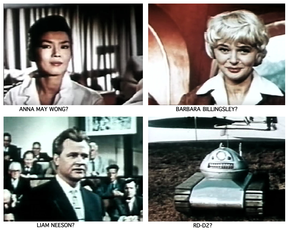 And what a cast! Judging from the photos I saw, we have Ernest Borgnine, Michael Ironside, the Super Mario Brothers, Anna May Wong, an Oompa-Loompa, Ben Kingsley, Barbara Billingsley, the Alvin And The Chipmunks fan club, O.J. Simpson, R2-D2, George Takei, and what looks like a slightly overweight Liam Neeson with Superman hair. Yes, I’m sure that’s Liam. So prepare for a superior science fiction story with lots of well-known character actors, as I view for your enlightenment – as well as my own – On The Good Ship Venus! Sorry, I mean First Spaceship On Venus (1960)!