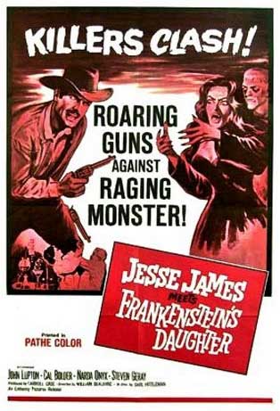 Contrary to the film’s title, it really should actually be called Jesse James Meets Frankenstein’s Grand Daughter. The movie combines cowboys, Indians, cops, robbers, Mexican villagers, Jesse James and his muscle-bound pardner, a European brother/sister team of mad scientists, and a monster. All it needs is an extra-terrestrial transvestite from transexual Transylvania, and you’d have a rather exciting, although very strange movie. Ooh, I just had a brainstorm! Let’s make an Australian supernatural soap opera and call it TranSylvania Waters! It would be like a cross between Dark Shadows and Kath And Kim – oh dear, Kath And Kim? Maybe not – just pretend I didn’t say anything.