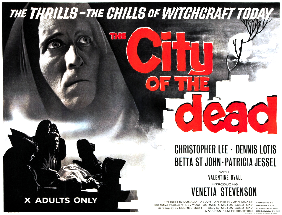 This week’s trouser-filler is the British tourist trap known as Horror Hotel (1960) starring two of the tallest baritones I’ve ever met, Christopher Lee and Valentine Dyall. Horror Hotel was made at Shepperton Studios which, more than a decade later, would squeeze out the cult classic The Wicker Man (1973) which also starred Mr. Lee in a somewhat similar baritone. Although made in England, the story is set in the USA, and you can sometimes hear the actors slip in and out of their accents. It’s easy to make fun of its clichés, but the truth is Horror Hotel created many clichés that were later done to death and, at its best, contains some genuinely creepy scenes and a plot twist or two.