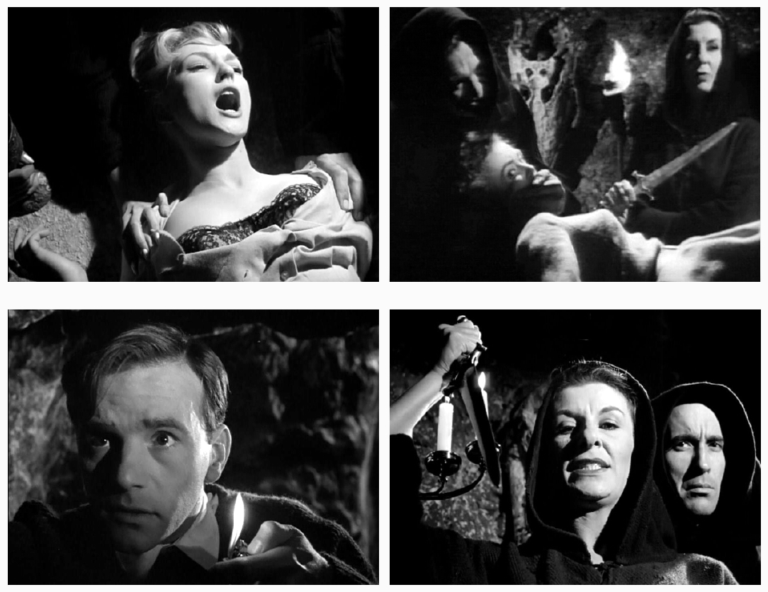 Horror Hotel was known under the more atmospheric title City Of The Dead in its native England, but the USA changed its title to avoid confusion with Detroit and also removed two minutes of footage. Still, any excuse to discuss this excellent exercise in atmosphere is good enough for me. It may not be a masterpiece, but it’s definitely worth discovering. Horror Hotel has been compared to Alfred Hitchcock’s Psycho (1960) due to some structural similarities. Both films begin by establishing an attractive young blonde as the main character, leading the audience to assume that she’ll be the protagonist for the remainder of the story. In both films, the blonde travels to a isolated location and checks into a motel run by an eccentric manager – which is essential for any exciting holiday – and both films were made the same year.