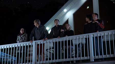 I appreciate the attempt at developing good depth at character and meaningful relationships between everyone but I won’t belabor trite clichés about being close since this particular attempt isn’t even that. The friendships are loosely explained at best, I think they’re college buddies, and most of what there is comes across as awkward. It’s as if there’s a dirty secret between them all, and there is but that gets revealed later so that’s not it, and no one is quite sure what to say. Despite any progress that is made in the character department, once the second half starts rolling in then none of it seems to matter. As each of the friends gets ‘caught’ by the aliens the rest grow increasingly worried and frightened. Our group proves to be of little use against the alien tactics and can’t fathom the strange occurrences that are happening to them.