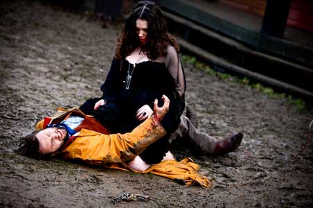 The pacing is hard to describe. A whole bunch happens in the first 30 minutes of the film; however the meat of the story seems to take forever to get going. That could be because of the development of the dysfunctional family’s relationship with each other. At some point early on I got it: they don’t get along. Once we get past that tediousness, we are subjected to the back story of the seductress and then the back story of the cowboy. Both of which are related by the cowboy to the gothy British girl (couldn’t stop thinking about Winona Ryder in Beetlejuice) over the course of another 30 minutes. Before you know it, though, the movie is riding off into the sunset leaving you with this feeling of WTF? In other movies that’s a good thing (Black Swan anyone?). Here however, I just needed some Tylenol.