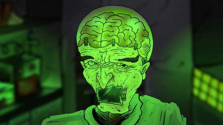 As an animation, the visuals are cleverly done using a 2D approach that combines sort of a Flash meets hand drawn presentation. The graphics are well done and make no excuses for taking opportunities to indulge into gory fun. I was reminded of the early MTV-style of animating which this would fit into perfectly if the material was a bit safer for TV.