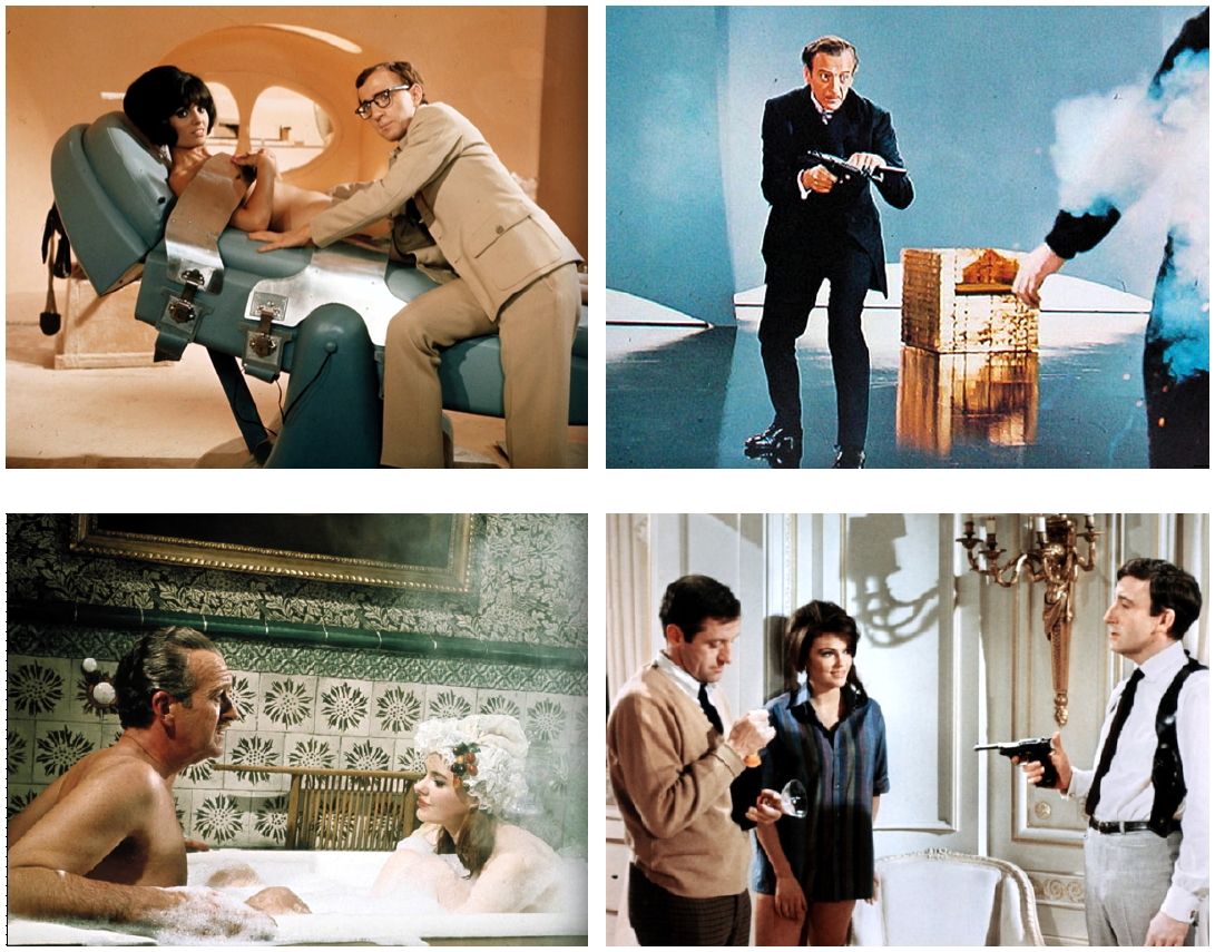 Since Charles Feldman was unable to use Sean Connery in his version, he decided the only possible solution was to send-up the James Bond persona, making Casino Royale a kind of farcical satire with only a very marginal connection to the original novel. Despite having ten writers (including Terry Southern, Woody Allen, Wolf Mankowitz, Ben Hecht and Joseph Heller), five directors and a dream cast that included Peter Sellers, David Niven, Ursula Andress, Orson Welles, Joanna Pettet, Deborah Kerr, Woody Allen, William Holden, Charles Boyer, John Huston, Barbara Bouchet, George Raft, Jean-Paul Belmondo, Peter O’Toole, Sterling Moss, Terrence Cooper, Bernard Cribbins, Ronnie Corbett, Kurt Kaszner, Anna Quayle, Geoffrey Bayldon, John Wells, Derek Nimmo, Geraldine Chaplin, Valentine Dyall, Anjelica Huston, Burt Kwouk, John Le Mesurier, Caroline Munro, David Prowse, Jacqueline Bisset, Alexandra Bastedo and John Bluthal, the movie is a confused concoction in which the secret services of Britain, America, France and Russia meet to discuss how the evil organisation SMERSH can be foiled.