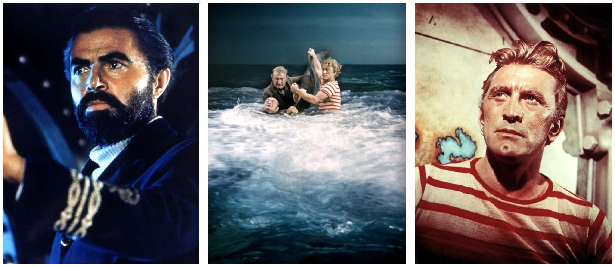 The film’s plot, which has very little to do with Verne’s original, concerns Professor Aronnax (Paul Lukas) and his two companions, Conseil (Peter Lorre) and Ned Land (Kirk Douglas), who board an American warship to take part in a search for a mysterious sea monster that has been plaguing shipping in the area. A large reptilian form with jagged scales and large glowing eyes, the sea monster is sighted and fired upon by the warship, with the result that it turns around and rams the warship with tremendous force. The Professor, Conseil and Ned escape from the sinking ship in a lifeboat and eventually find themselves alongside the sea monster, which turns out to be a man-made vessel. Upon entering the vessel they are greeted by Captain Nemo, a scientist ahead of his time who, with the aid of his underwater ship Nautilus, is conducting a campaign of destruction against weapons manufacturers, by ramming and sinking their ships. Nemo wants to force the nations of the world to abolish war, but at the same time he is seeking revenge on those responsible for the death of his wife and child, both of whom died at the hands of arms dealers attempting to force Nemo to hand over his scientific secrets.