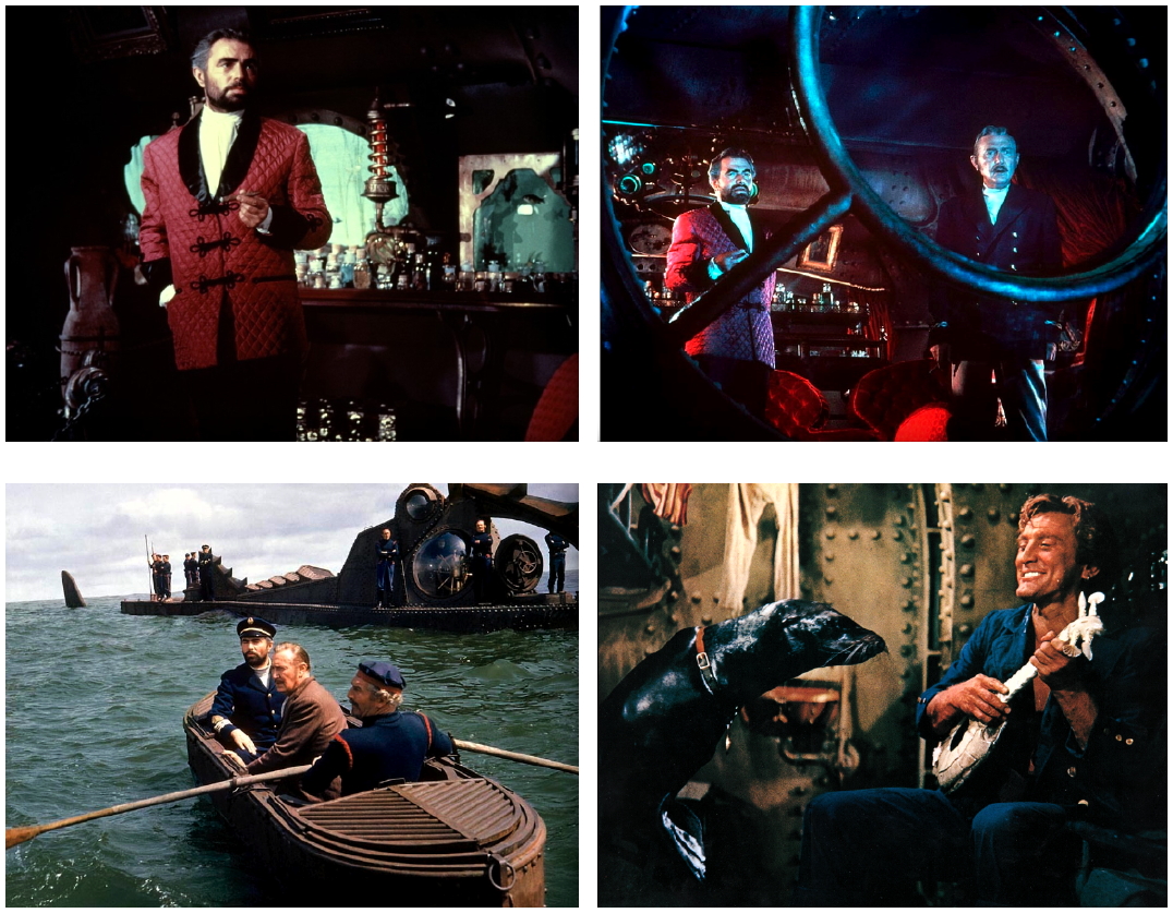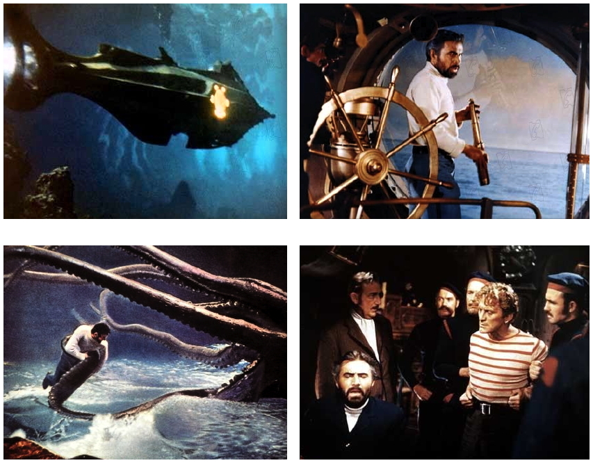 “I spent a year preparing the film. I worked on the screenplay with the writer Earl Fenton right from the start because, to begin with, there was no actual story. You can’t make a story out of the book because it doesn’t have one. The book really consists of a series of unrelated incidents with a few clues as to what might be a story about Nemo. There were all sorts of allusions as to what he is doing under the sea and why, allusions to what his politics are and what happened to his family and so on. So Earl Fenton and I found it very interesting to try to reconstruct a story from what was hinted at in the Jules Verne original. The odd thing is that now 20,000 Leagues is always thought of in terms of our story, the story of the film, instead of what is in the actual book. Our trick was to retain the basic incidents that people always remembered from the book, but not necessarily in the same order. For instance, everybody remembers the underwater burial and the fight with the squid, so we had to include those two incidents, but our motivations for them were quite different from the book. I must say that it was Earl Fenton who came up with a way of approaching the whole thing. He decided, and I fully agreed, that the only way you could tell this story and make it work as far as suspense was concerned, was to make it a prison/jailbreak story, and that is basically what we did. The three men were captured by Nemo and kept in the submarine, and we treated them as if they were in a prison story – all their time was spent planning an escape, and making several aborted attempts along the way, before finally succeeding at the end.”