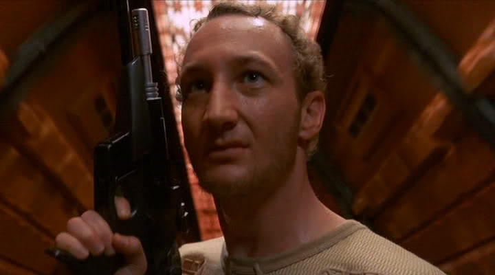 Most the effects work in the film. The giant worm looked cool as did the alien that pops up. The one thing that really annoyed me was the overly cartoony sound effects. It’s most noticeable during one of the end fights as well as the firing of the lasers. They just sounded like something you would hear on a Saturday morning cartoon. Now that I mention it, the laser blasts themselves actually looked pretty cartoony too. There is a bit of gore in the film and it is pretty awesome. I always love to see a good exploding head and “Galaxy” delivers us one of those. I guess I should also mention that the giant worm rape scene is every bit as bizarre as I had imagined it.