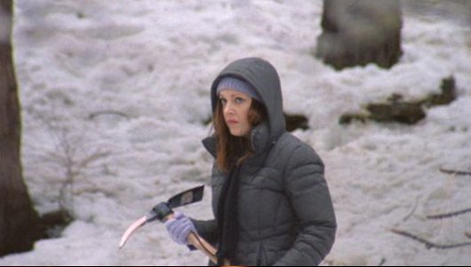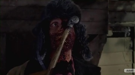 I do want to say though, because I think it is important to be fair, that when the kids grab up whatever makeshift weapons they can and head out together to dig their car from the snow and make an escape attempt, I was rather impressed. It never seems like people arm themselves soon enough in psycho killer films. And they definitely don’t stay together in a group like they should. But here they grabbed up shovels and sticks and pickaxes and headed outside and had a few people stand guard while the others worked. It was a good plan, and while it wasn’t going to work out for them (obviously), for at least a few minutes I was impressed. Of course, as soon as that didn’t work out they were splitting up all over the place and death and dismemberment followed. But I will always remember that for that few minutes, this movie did seem to try to be smarter than most movies like this end up being.