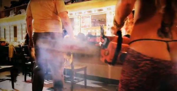 I’m happy to report that “Father’s Day” is a perfect exploitation film. Every possible element you can think of is thrown into the mix and by some miracle it all works. The film is disgustingly nasty with plenty of practical gore effects to repulse (and excite) the most jaded of gorehounds. No real CGI here but Astron-6’s own Steve Kostanski had a hand in some stellar stop-motion animation work. The titillation factor is also present. Ahab’s sister Chelsea is a stripper so there is plenty of the bouncy on display since several sequences play out within the strip club. We are even introduced to a half-naked stripper with a very large chainsaw. Not all the nudity puts a smile on your face either (you may want to keep that in mind). The story was nothing like I had imagined it to be. It follows the main summary for a portion of the film then goes way over the top and it becomes impossible to predict anything that will happen next. It keeps you on your toes.
