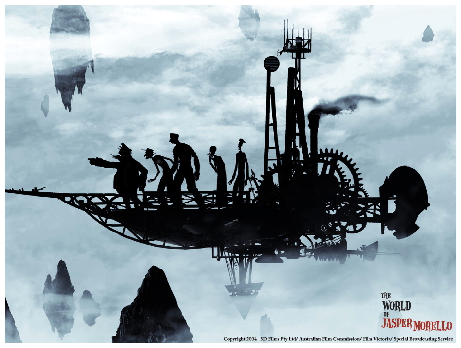 From the first sepia-toned images of a smokey cityscape through which industrial-chic ironclads glide, you know you’re seeing something special. Silhouetted characters, at once both reminiscent of Victorian daguerreotypes and Indonesian shadow puppets, manage to be exaggerated without being cartoonish, and the whole Jules Verne-inspired atmosphere evokes not only the aesthetic of the Industrial Revolution but also a fantasy world of floating islands, flying fish and other strange creatures.