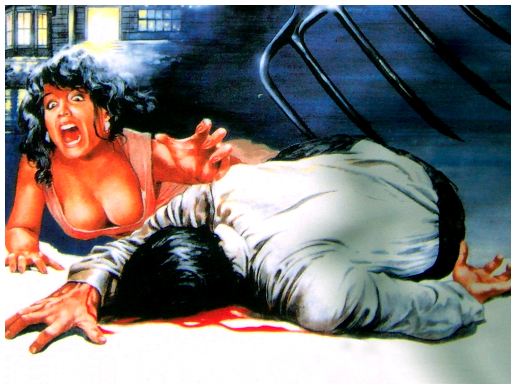 DRESSED TO KILL (1980), directed by Brian DePalma, plunges the viewer headfirst into an erotic cloud as frustrated housewife Kate Miller (Angie Dickinson) fantasises while she’s actually enduring one of her husband’s wham-bammers. Later, the unhappy Kate recounts her woes to trendy Manhattan therapist (Michael Caine), but that afternoon she’s even more guilt-ridden after some torrid rumpy-pumpy in a taxi cab with a handsome stranger she picked up whilst cruising an art museum. Things turn particularly nasty when, in true PSYCHO (1960) style, our lead character is viciously murdered mid-film in an elevator. Hooker Liz Blake (Nancy Allen) then becomes the film’s new lead after witnessing Kate’s gruesome murder. As the prime suspect of hard-assed cop Marino (Dennis Franz), Liz teams up with Kate’s whiz-kid son (Keith Gordon) and together they set out to catch the killer.