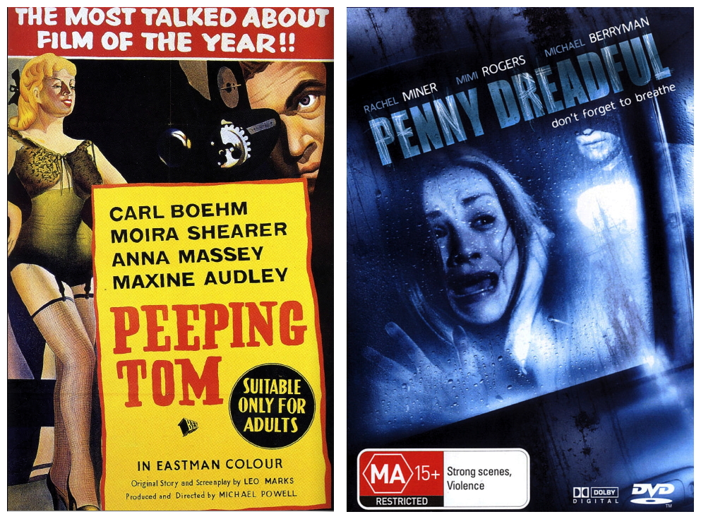 PEEPING TOM (1960), directed by Michael Powell and written by World War Two cryptographer Leo Marks, revolves around around a serial killer (Carl Boehm) who murders women while using a portable movie camera to record their dying expressions of terror. This obsession dates from the time when, as a child, he served as the subject of some cold-blooded experiments in the psychology of terror conducted by his own scientist father. Its controversial subject and the extremely harsh reception by critics effectively destroyed Powell’s career as a director in the United Kingdom. However, it attracted a cult following, and in later years, it has been re-evaluated and is now considered a masterpiece.
