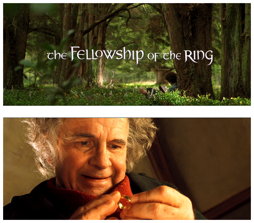 “An ancient Ring thought lost for centuries has been found, and through a strange twist in fate has been given to a small Hobbit named Frodo. When Gandalf discovers the Ring is in fact the One Ring of the Dark Lord Sauron, Frodo must make an epic quest to the Cracks of Doom in order to destroy it! However he does not go alone. He is joined by Gandalf, Legolas the elf, Gimli the Dwarf, Aragorn, Boromir and his three Hobbit friends Merry, Pippin and Samwise. Through mountains, snow, darkness, forests, rivers and plains, facing evil and danger at every corner the Fellowship of the Ring must go. Their quest to destroy the One Ring is the only hope for the end of the Dark Lords reign!” (courtesy IMDB)