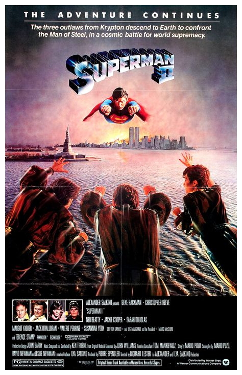 In Superman The Movie (1978), three criminals on Krypton were cast into the Phantom Zone, locked in a kind of time warp. When Superman (Christopher Reeve) hurls a terrorist group’s hydrogen bomb into outer space so it won’t explode in Paris and kill Lois Lane (Margot Kidder) and, oh yes, millions of strangers, the explosion releases the criminals from their prison. Evil Terence Stamp, striking-looking Sarah Douglas and brutish Jack O’Halloran arrive on Earth, determined to take over. Since they have superpowers, only Superman has a chance against them. But Superman has gone away to his Arctic Fortress Of Solitude with Lois, whose feeling that Superman and Clark Kent are the same person has finally been confirmed. Superman decides to give up his immortality so he can have a sexual relationship with Lois so, just when the world needs him most, he is unable to help.