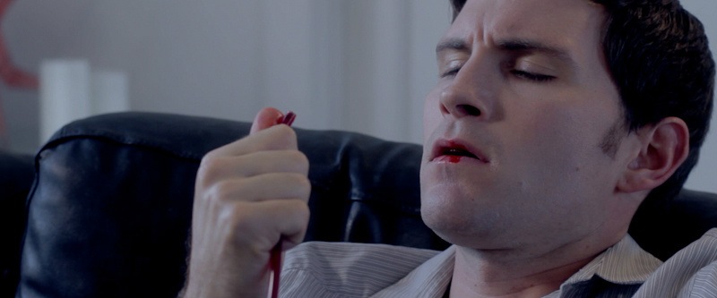 The first day we did any of the blood gags was funny because we couldn’t get the rig to work, and everyone, cast and crew both were jumping in all that the same time trying to fix it. I think the stuff we were shooting was so heavy, everyone was just like, “bloods here! Let’s have some fun!” I ended up walking outside because I couldn’t handle everyone jumping in trying to get this stupid tube to run blood. It was ridiculous. But it was a lot of fun. Another time, I was behind a couch making this giant pool of blood on the floor and I was so happy that it was working good and looking cool. Then I noticed that I could see the cameras reflection in the pool of blood and I said, “jeff, am I in the shot?” and he said, “sure are.” and for some reason, I didn’t move. I thought that if I stayed completely still, the camera wouldn’t see me, like a raptor in Jurassic Park or