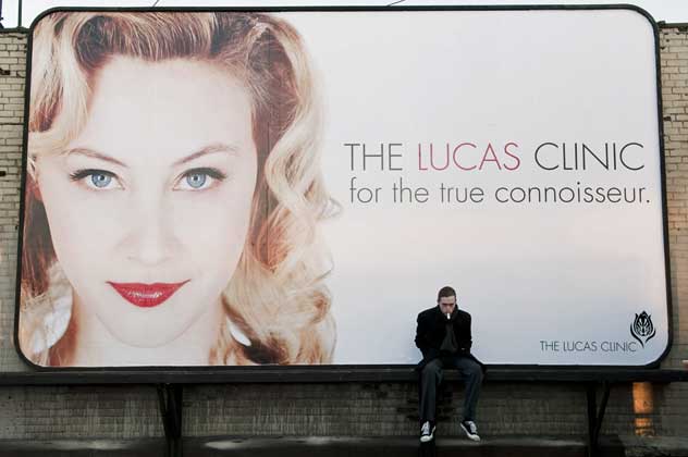 Brandon Cronenberg is a director to keep an eye on, a master of cinema in the making, full of promise and imagination. Antiviral may not be the film that puts him on the map for general audiences, but it displays a true artist behind the camera – one that is catching the eyes of most genres fans. His composition and eye for contrast is astounding and mesmerizing to watch. It is evident from the first frame of the film, as Antiviral opens on its star sitting in front of a bright white mural of marketing the Lucas Clinic and its brightest celebrity, Hannah Geist. The sterility of the “sell” is stark white, the harsh reality is dark, dingy and gray. The reality of it all is illuminated with bright red. The only thing notably missing is pacing and action. The film languishes in its message, overstaying its welcome in many scenes.