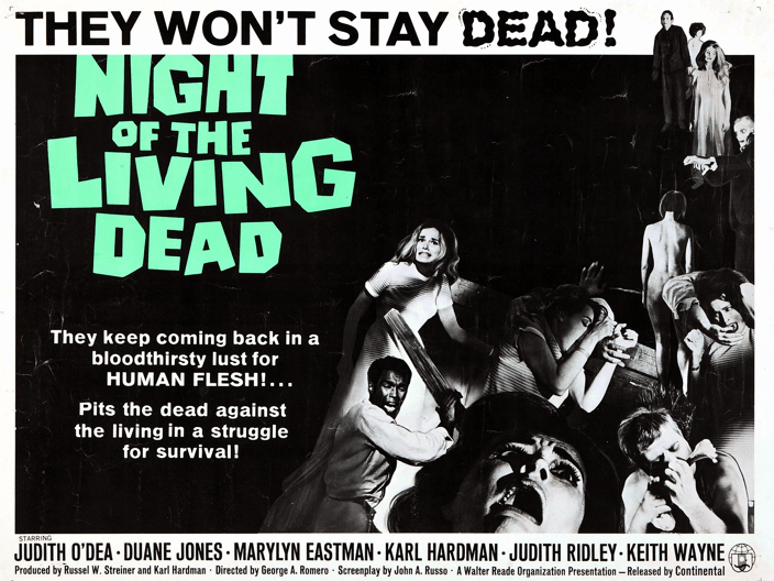 Night Of The Living Dead was originally written by Romero and John Russo as a horror comedy called Monster Flick which, at the time, was about alien invaders who befriend a group of teenagers and could possibly be mistaken for Teenagers From Outer Space (1959), so they returned to the writing board and added the living dead which Romero called ‘ghouls’ after the television executives he had as clients. Then he read I Am Legend by Richard Matheson, and came up with a more apocalyptic scenario. I Am Legend, of course, was adapted as The Last Man On Earth (1964), which was the first film I discussed, thus the Cycle Of Life and the Public Domain revolves. It was originally shot under the title The Night Of Anubis, then the name was changed to the less-literary but more marketable and accurate Night Of The Flesh Eaters, but they didn’t want to be confused with the promotion of a local steak house, so they changed the title to Night Of The Living Dead and a legend was born.