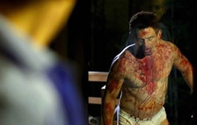 Part of what makes Eddie, The Sleepwalking Cannibal so successful is the fascinating relationship between Lars and Eddie. Even without the horrific elements, the characters are strong enough to support a feature film. The actors make the most of the pairing. Thure Lindhardt allows Lars to be a jerk at first, struggling to adapt to Eddie’s behavior and unique communicative skills. What comes across as selfish and self-centered at first grows into a bonafide affection for his mute friend. Lars is a complex character. Eddie becomes his muse, and a whole lot more, along the way. Dylan Smith gives Eddie a quiet innocence with a hint of a malicious nature bubbling just beneath the surface. There’s something going on behind the inexpressive face, sullen eyes and quiet demeanor. He’s a calm before the storm. How each protects the other, reacts to the other and drives the others motivations is unique to Eddie, The Sleepwalking Cannibal. Behind the laughs and the screams is a touching buddy story.