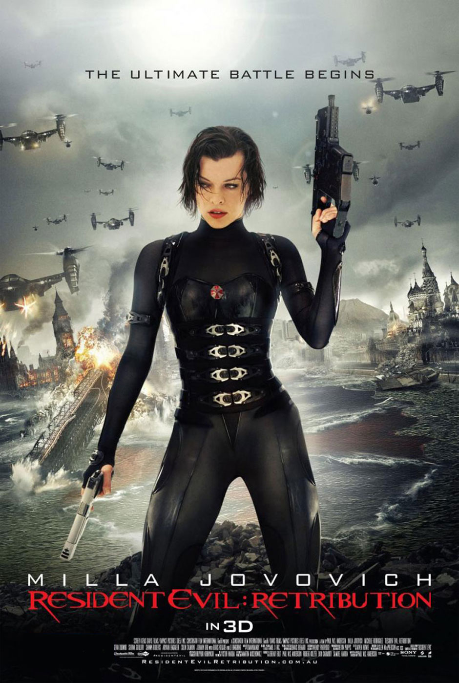Up first is Doc’s review of director Paul W. S. Anderson’s latest entry in the Resident Evil film series, Resident Evil: Retribution 3D. The film picks up directly after the closing cliffhanger from Resident Evil: Afterlife 3D (2010) where Alice (Milla Jovovich) faces down an attacking swarm of Umbrella Corporation helicopters. The 3D is fantastic, the action is amazing, Jovovich continues to be sexy as hell but the film lacks anything that resembles character development or plot.
