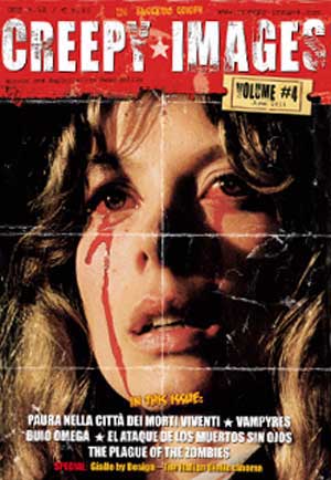 Lucio Fulci’s unforgettable gore fest is featured with some eye popping shots. Named as “Ein Zombie hing am Glockensil”, we just like to call it by its 80’s name of “Gates of Hell”. Yep that one with the priest that hung himself and causes young ladies to bleed from the eyes or puke there guts out. It features a very hard to find “drill to the head” lobby pic and some really creepy possessed demon zombie shots. “Bui Omega” was another classic of disturbing nature that us folk will see floating around under the title “City of the Living Dead”. Creepy Images” – writer Jeremy Mincer takes us on a trip with his love for the Italian horror genre of Giallo, among its main genre contributors being Dario Argento & Mario Bava. Other chapters of interest feature poster art and erotic shots for “Vampyres” the famed erotic horror masterpiece and more hard to finds from the “Blind Dead” series. The issue closes out with some cool art for “Plague oF the zombies”.