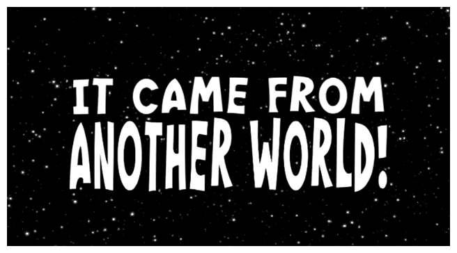 It Came From Another World! makes a significant advancement in several areas of Mihm’s movie making – editing, special effects, lighting, writing – the sorts of things that normally differentiates a motion picture from a train wreck. The soundtrack is a wonderful mash-up of vintage copyright-free music, and the costumes by Carol Eade and Miss McDonough all expertly blended to enhance the fun which is, of course, the most valuable part of this particular film experience.
