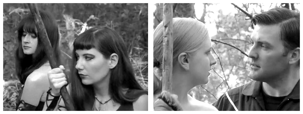 Versatile Josh Craig plays both young Captain Jackson and his own father, the rockin-and-a-rollin’ Professor Jackson, who you might remember dimly from The Monster Of Phantom Lake and It Came From Another World! while newcomer Dan Sjerven stars as dynamic Lieutenant Elliott. But that’s not important right now – the film is called Cave WOMEN On Mars, after all, and they’re certainly worth talking about. My old girlfriend Rachel Grubb is menacing as Hagra, the leader of the bad girls – which brings back fond memories – and Brooke Lemke is also rather menacing as Eina, the leader of the good girls. Hagra’s cohort Gorga is played by Emily Fradenburgh, and Eina’s friend Orla is portrayed by Alana Bloom. They all act above and beyond the call of duty – perhaps even necessity – which is perfectly suited to the old fifties look and style of the film. The only thing missing is half-a-century of film decay and a dodgy VHS transfer.