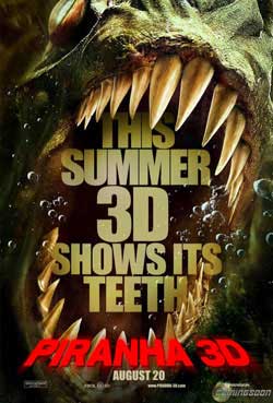 Are you looking for a fun movie that is loaded with violence, gore, and nudity? Then get to the nearest theater and check out “Piranha 3D” as soon as you can. I had an absolute blast with it and thought that it pretty much ruled. I think that any horror fan (especially those who like the “evil animal” films) will love this movie. I was so into it that I really didn’t want it to end and was wanting more after the end credits had rolled. I very seldom actually go to the movies anymore (The last movie I went to see at the cinema was “The Watchmen” in April of 2009) but I am very glad I decided to go check out “Piranha 3D.” As a matter of fact I can’t remember the last time I had such a good time watching a movie at a theater.