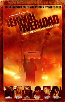 The last movie from Stephenson that I watched was the horror anthology Terror Overload (2009). This is definitely Stephenson’s most mature work to date. In it we see his best camera work, his strongest script, his fastest paced movie, and the best gore f/x to date. Overload has three directors and Stephenson directed the wrap-around story “Devil Driver” and the snuff story “Lot Lizard.” A girl’s car breaks down (played by Scarlet Salem, one of the girls in You’re Next 3) and is picked up by a friendly trucker. The trucker is played by Joe Knetter who also wrote Overload and You’re Next 3 and played the axe murderer in You’re Next 3 and a zombie in Doomed (he also wrote and stars in Stephenson’s new flick Strip Club Slasher). Whew. He then proceeds to tell her three stories. The first, “Dinner Date” (directed by Kevin Myhre) is a fairly predictable story of a couple on a first date. It comes as no surprise that the date ends up with the chick tied up in his basement!! The gore is what saves this one as we watch the man perform a vivisection on his date (I’d hate to see what he does on a second date!!).
